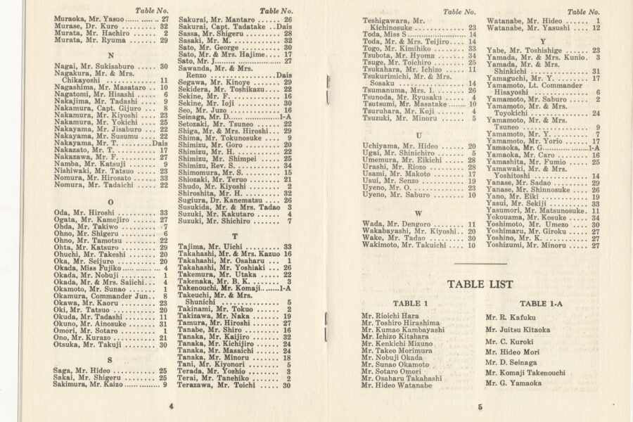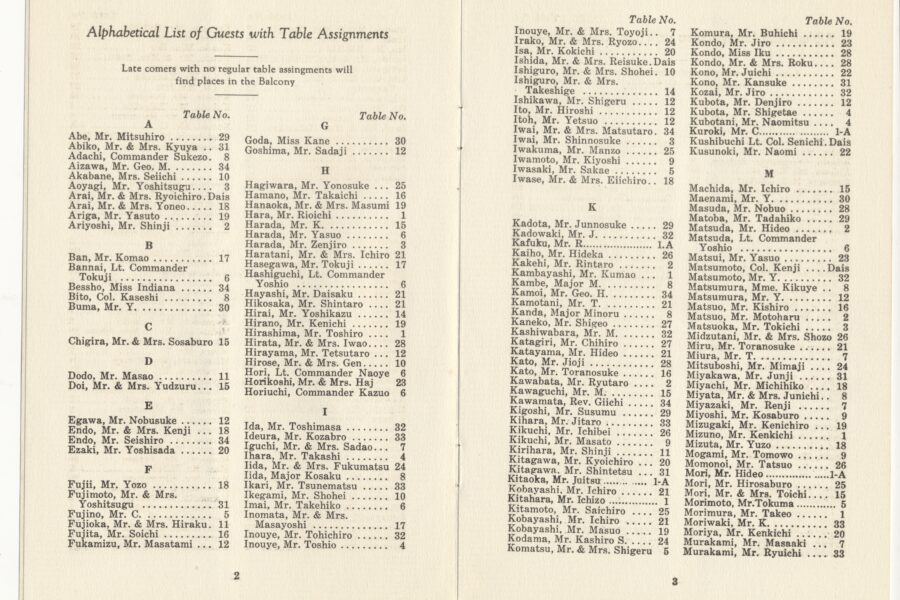 On November 14, 1932, fourteen prominent Japanese businessmen established the Japanese Chamber of Commerce of New York, Inc. to foster and promote friendship and economic relations between the United States and Japan. Activities included hosting Japanese business and political delegations and the annual gala. This banquet was for the JCCI Annual Gala in 1940.